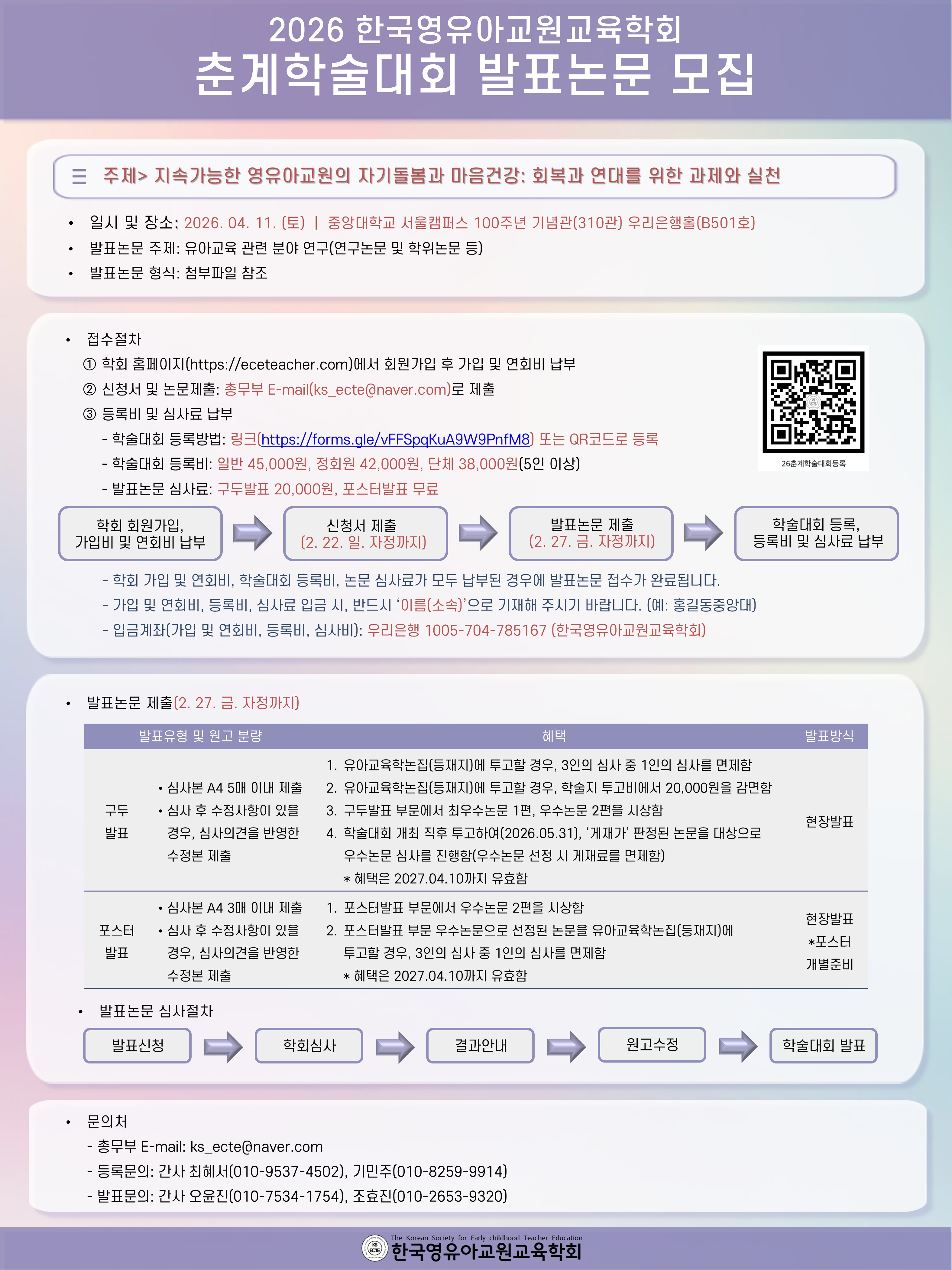 한국영유아교원교육학회 회원은 온라인 논문투고 시스템을 통해 논문 투고가 가능합니다.