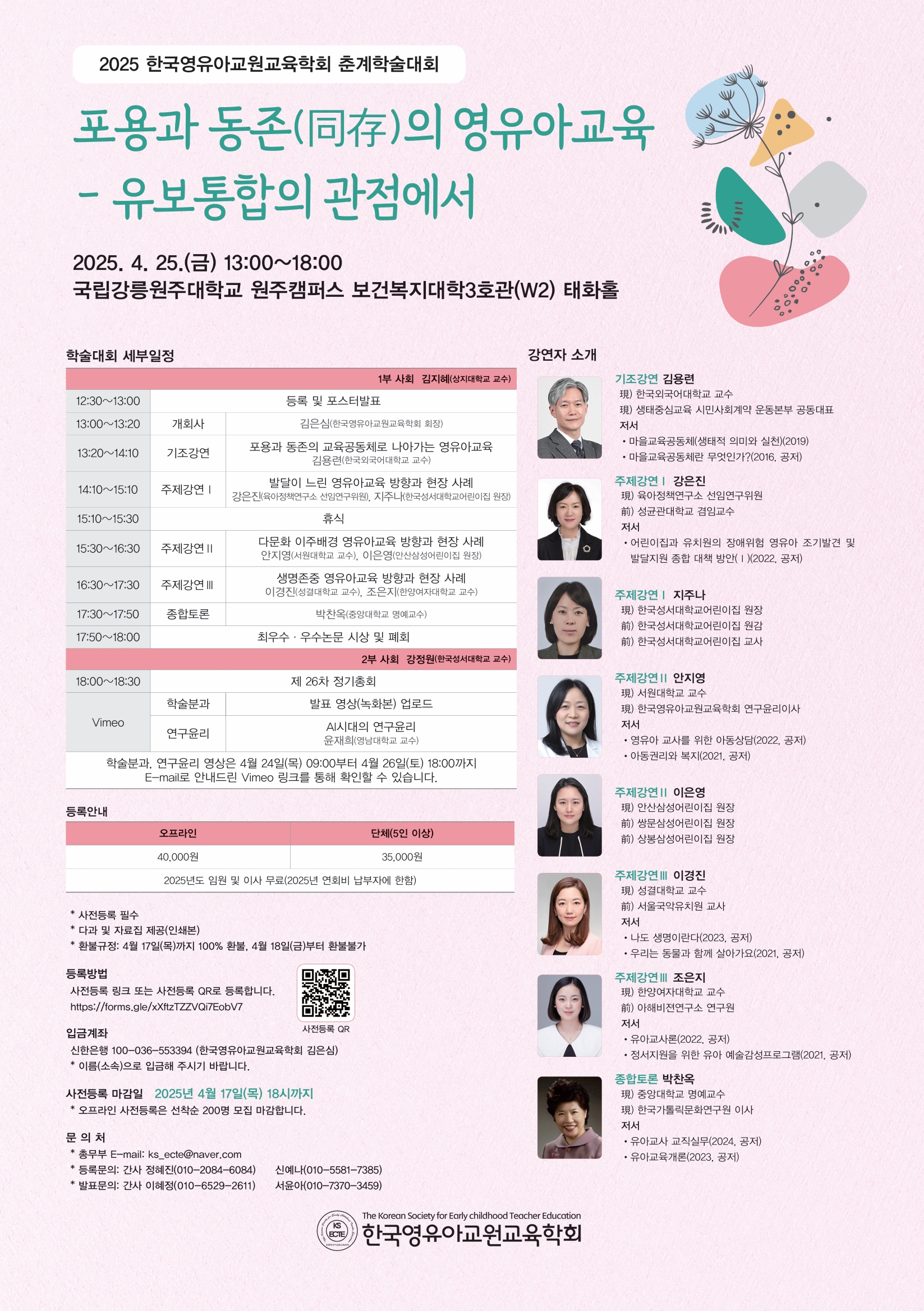 [한국영유아교원교육학회] 2025 춘계학술대회 원고모집 및 일정안내
